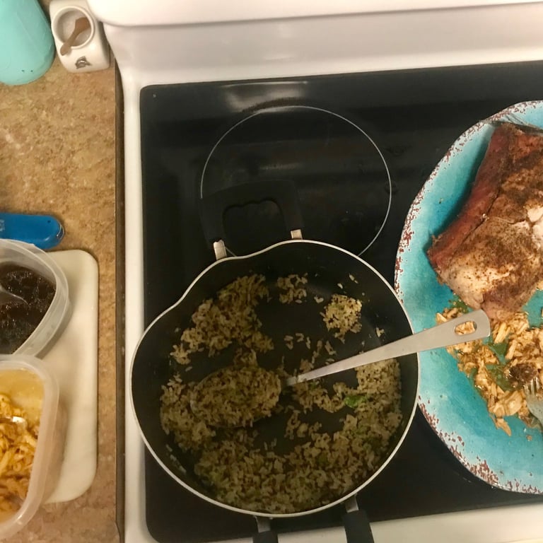Our friends brought a pork loin they had brought from home and wine they had salvaged from their house. We had champagne that had survived the storm, cold drinks, rice, broccoli, and pasta. After 4 days of tuna, PB&J, and warm water….. it was a FEAST
